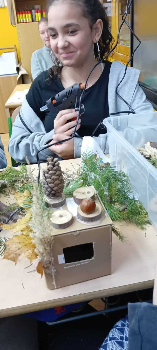 Žáci druhého stupně tvořili z přírodnin domečky pro broučky.