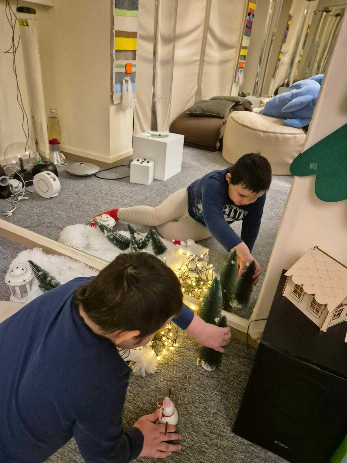 V naší mateřské škole využíváme také Snoezelen prostředí, které dětem nabízí prostor pro zklidnění, relaxaci a rozvoj smyslového vnímání. Pomocí světel, jemných zvuků, příjemných barev a různých podnětů mohou děti bezpečně objevovat svět kolem sebe a zároveň si odpočinout.